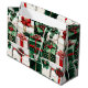 Helgdag julklapp i sluttande och elegant med en vattenfärgad mönster av vackert förpackat Julklapp. Julgåvor inslagna i grönt med rödbögar, gåvor inslagna i grönt med guld rosett band och guld, vit presenter inlindad med guld rosett band och rödböna, vita gåvor inslagna i rött rosett band med grå och röda bär på toppen.
