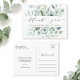 Tack för detta vykort finns färgade vattenfärger, botaniska gröntar och ljusblå löv med modern kalligrafi. Perfekt för bröllop, födelsedagar, studenten och andra händelser.