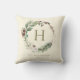 Ett modernt och elegant dekorativ kudde med vattenfärgad julbakgrund och botanisk blommigt i en snyggt sofistikerad färgad för krämbakgrund för att visa ditt hem den här julhelgen. Texten är ett enkelt, minimalistiskt serif-teckensnitt. Anpassa monogrammet och namn.