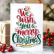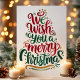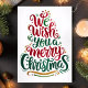 Sprid helgdag munter med det här vackert designade kortet "Vi önskar dig ett God jul". Det här kortet är perfekt för att skicka varmt önskemål till vänner och familj. Det har fjällrött, grönt och guld-tecken i en roligt och ett visstiskt teckensnitt. Den djärva typografin och utformningen av eleganten kommer säkerligen att göra detta kort till ett utmärkande biet bland dina semesterhälsningar. Perfekt för alla som tittar skicka ett klassiskt julmeddelande med en modern och färglös twist!