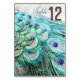 Elegant Vibrant Teal Peacock Feather Bröllop Bord Bordsnummer