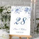 Elegant Victorian Blue Fransk Blommigt Bröllop Bordsnummer