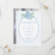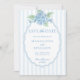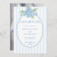 En vintage-inspirerad, klassisk och elegant-barnårsjubileum med en Victoriansk engelsk trädgårdsestetik. Fintvätt av blåa vattenfärger och charmering av blommor, glöm mig inte, arrangeras mot mjuk, blå rand med en skalopad, handdragen oval ram.