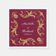 Elegant Viktorian Bröllop Napkins med namn i elegantens kalligrafi omgiven av ett ram för prydnadsdjur med viktoriska accenter på en mörk bakgrund. Om du vill göra ytterligare anpassningar klickar du på länken "Anpassa" och användor verktyg som är utformat för att ändra mallen.