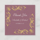 Elegant Viktorianskt Bröllop Tack Kortet med opulenta dekorationer med viktoriska accenter över en mörk bakgrund med "tack" i kalligrafi tillsammans med din namn underbar för ett traditionellt eller formellt bröllop. Markera ett färg som koordinerar med ditt bröllop-kontorsmaterial och anpassa det med dina egna uppgifter. Om du vill göra ytterligare anpassningar (bakgrund färg, teckensnitt stil och färg) klickar du på länken "Anpassa" och användor verktyg som designen för att ändra mallen. Vissa bilder går också att ta bort.