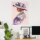 Ett porträtt av en underbar Victorian dam i en lavender snöre klänning och blommigt hatt. Elegantens dekorfärg poster som reproduceras från den ursprungliga pastellmålningen "Lavender Snöre" av Sue Halstenberg.