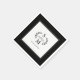 Svart & vit design för bröllop och förlovnings servetter med papper kännetecknas av en anpassad monogram vapensköld bestående av ett par älskande fåglar som är vända mot varandra med ett litet hjärta mellan sig och två initialer. Varje anpassad initial placeras ovanför eller nedanför fågelparet. Klassiska kransgrenar pryder utsmyckningen på vardera sidan. Dessa detaljer är kolgrå och en krispig vit bakgrund inramad av en sofistikerad svart fyrkantig ram med en tunn vit accent.