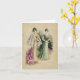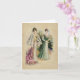 Två viktorianska Dam, klädda i färgstarka, elegant. Bild från Designer Magazine - november 1899 överlappade på en shabby gammal grunge end-papper som skannats från en gammal vintage 1867 era bok. Ljust gult eller beige i färg.