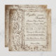 Unik Elegant Viktorian Ram Rustic Wedding-inbjudningar med en utvecklad rulla-snurrande ram-design på en tryckt antik papper bakgrundsdesign. Samma pappra utformning i finare ram och vintage finns också på baksidan, som också lyder "Lyckligtvis allt efter". Teckensnittets typsnitt är en söt kombination av typsnitt för ett typografiskt stil utseende. Dessa är underbara för vintage och rustiskt temat bröllop som också vill ha elegant. Matchningsobjekt: inbjudningar till rusbröllop, inbjudningar till landsbyggsbröllopet, inbjudningar till vintage bröllop, unika bröllopsinbjudningar, antika, vintage, tillkännagivanden från Victorian ram bröllop, antika pappra