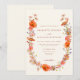 Denna eleganta vildblommiga bröllopsinbjudan fångar essensen av en bohemisk, naturinspirerad fest, vilket gör den idealisk för ett höst-, vår- eller sommarbröllop. Designen har en unik, handmålad vildblomsterkrans, vackert arrangerad med en fantasifull blandning av orange, brun, gul, grön, terrakotta, lila och rosa blommor. Dessa livfulla men jordnära färger skapar en varm och inbjudande atmosfär som är perfekt för en fest med rötter i naturlig skönhet. Det moderna, stilrena brända orange typsnittet tillför en elegant touch och säkerställer att din inbjudan sticker ut med sin raffinerade men boho-chica vibe. Mot en mjuk beige bakgrund frammanar inbjudan en tidlös, jordnära elegans. De lättanpassade mallarna låter dig sömlöst lägga till dina bröllopsdetaljer, vilket gör denna inbjudan till en perfekt återspegling av din unika stil och den romant