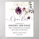 Elegant burgundy vin och faux guld blommigt bouquet med skript öppet pub och klassisk typografi för bröllop.