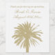 Elegant vin flaska-etiketter för chicens strandbröllop. Tropisk designmall med silhuette handflatan träd. Anpassa med anpassningsbar och namn av brud och triom. En del av det vackra matchande temat som omfattar dekoration och kontorsmateriel i bord. Sandy beige eller anpassningsbar färg skriver ut.
