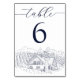 Elegant Vingårdsillustration Destination Bröllop Bordsnummer
