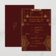 Fyll i din bröllopsbrevpappersvit med detta eleganta vinröda och gyllene svarskort. Med en rik vinröd bakgrund accentuerad av lyxiga gyllene ornamentala detaljer, kompletterar detta svarskort perfekt traditionella eller klassiska bröllopsteman. Helt anpassningsbart för gästernas svar, närvaroregistrering och måltidsalternativ, vilket säkerställer både stil och funktionalitet.
