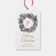 Snyggt, rik och klassade hand plockade vattenfärgsröda och blå bär och evergreen löv i en krans med redigerbart namn och festive hälsning God jul och anpassningsbar monogram i kranen.