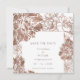 Den här vintage blommigt bröllop spara datum-kortet i elegant har en modern botanisk utformning med mocha mousse brun blomma konturer. Perfekt för romantiska, rustiska eller trädgårdsbröllop kombinerar enkelhet med sofistikering. Utforska matchande produkter för att slutföra din bröllop-stationsuppsättning och skapa en sammanhängande titt för din speciella dag!
