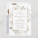 Fånga den tidlösa elegansen i din speciella dag med vår vintage-inspirerade inbjudan till fotobröllop. Den här utformandet har en känslig blommigt ram av vattenfärgade blommor och löv i varma neutralter av vitt, beige, elfenben, guld och brunt. Den här inbjudan är elegantens kalligrafiskript och är en perfekt för romantiskt bröllop som vill ha en klassisk, sofistikerad beröring. Visa förlovningen av favoritlodrät på baksidan av inbjudan. Låt din kärlek-historia utvecklas med en gammal tids ära och charm.