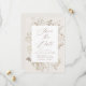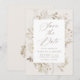 Elegantens blommigt sparar det datum som innehåller en känslig blommigt ram av vattenfärgade blommor och löv i varma neutralter av vitt, beige, elfenben, guld och brunt. "Spara datumet" visas i ett modernt kalligrafiskript med information om namn och bröllop som visas nedan. Den vintage som inspirerats sparar datumkoordinaterna med vår samling för Vintage av Elegant Blommigt bröllop.