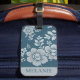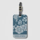Elegant Vintage Blue Flower Pattern Personalised Bagagebricka