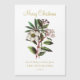Vintage botanisk illustration av vinterblommor bouquet med jul ro och Lauristinus, mycket elegant, sofistikerad och klassig grafik, med guld redigerbart "God jul"-meddelande och andra uppgifter om personligen.