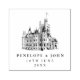This elegant wedding stamp feature a vintage illustration of a castle, which you can replace with an image of your destination wedding venue. Dark blue lettering lays out the couple's names and the date of the wedding.