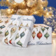 Step back in time with a pattern of exquisitely detailed, antique-style glass ornaments in a festive palette of rich red, shimmering gold, and sophisticated teal. Dotted between these heirloom baubles is the greeting "Merry Christmas," written in a graceful, classic script that adds a touch of pure sophistication.