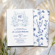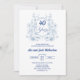 An elegant design featuring a blue Victorian crest frame, elegant calligraphy and a blue nature toile on the back of the invitation. Customize the details for a unique and chic Wedding Anniversary Celebration.