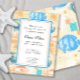 Elegant kustnära strandtema collage med snigelskal fisk och krabba för en händelse vid havet - bröllop, födelsedagar, öppning av en ny badort eller företag.