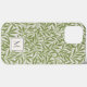 Elegant vintage William Morris grönt lämnar mönster med grått monogram på krämbakgrund.