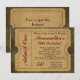 Inbjudningar till Biljett, Guld vintage antika stil. anpassa med din party-information. Gör ett underbarare, unikt inbjudan för alla tillfällen! För att likna en verklig anslutning till biljett med faux cutouts och faux perforerade sidor är detta djärva och roligt inbjudan underbarare för en födelsedagsfest när som helst! Guld med svart och burglös skrift