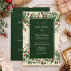 Celebrate your special day with timeless elegance using this classic botanical wedding invitation. Featuring a rich forest green center panel framed by delicate watercolor greenery and red berry accents, this design evokes a romantic, nature-inspired charm perfect for winter or holiday weddings. The refined typography and soft neutral background create a sophisticated balance, making this invitation a beautiful choice for couples seeking a graceful and inviting aesthetic.