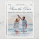 Den här dubblan sparade datuminbjudan unikt med en elegant vintage twist! Anpassa all text och lägg till dina 3 favoritfoton från en förlovning fotosession eller bröllop och använda den som ett meddelande eller bröllop. Med en lätt dammig blå och klassisk typografi parad med kalligrafi-skript kommer den här öga-infångningsinbjudan säkert att göra ett stänk. Designad av Simple Desert Design Studio som en del av uppsamlingen av Romantic Old Money Shabby chic Blue and White Bröllop. Säg till anpassningsbar färg att matcha ditt evenemang eller tema perfekt.