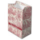 Vintage red toile de jouy Medium Gift Bag. Den här toile de jouy vintage Gift Bag är inspirerad av den utsökta utformningen av landskapsbilder på fransken. De här sofistikerade Toile-avtrycken är för närvarande en ständig vrede, designerna är klassiska och romantiska med snyggt i klass färg. De perfekt presentpåsar som ska användas för födelsedagar, Alla hjärtans dag, jul eller något annat tillfälle.