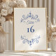 Elegant Vintage Romantik Blue Bröllop Bordsnummer