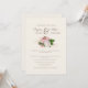 Elegant och en unik bröllopsinbjudan för elfenben, kräm-färgad med vackra rosa och dammiga ro vattenfärgblommor och grönska.