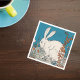 Detta är en illustration av vintagen på en vit kanin. Han är sitta i en buckla med gräs och blommor. Det görs i ett elegant färg-schema med blått, grått och orange. Se min butikskonst efter MAR för matchning av produkter med den här designen.