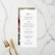 Den här eleganten är menyerna söt bröllop enkla att anpassa! De har en enkel text på framsidan i svart och en blommigt på baksidan i rött, vitt och grönt över en bakgrund med ett överlappande utseende.