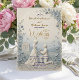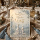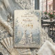 Dela med dig av din kärlekshistoria med en romantisk vintageinspirerad design med en elegant dammig blå och elfenbensfärgspalett, falska 3D-blommor och klassisk typografi. Denna klassiska komposition centrerar en vackert inramad förslags scen mot en böljande landsbygd, helt återgiven i mjuka elfenbensvita, krämfärgade och dämpade skifferblå toner. Layouten använder en formell hierarki och placerar tryckt modern kalligrafi graciöst ovanpå en simulerad skulpterad blomsterbård, vilket skapar en visuell illusion av riktat ljus som faller på intrikat basreliefputs. Detta är en platt tryckt bild med en falsk 3D-pregling och falsk guldfolieeffekt, inte faktiskt upphöjt material.