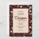 Den här enkla julfestinbjudan innehåller ett modernt skript med elegant och en boho-vinter-grönare som visas i mjuka tanklaster och teals på en mörks burgundbakgrund.