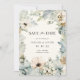 Denna moderna boho-vinter sparar datum-meddelandet har vackra handmålade akvarell dammiga blå blad och bär, krämfärgade anemoneblommor, salvia grönska och kottar arrangerade som en stilren ram på en elfenbensvit | krämfärgad bakgrund. Baksidan innehåller en vacker bukett och monogram. Hitta matchande föremål i Winter Dusty Blue Floral Wedding Collection.