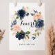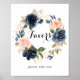 Denna eleganta vinterblomma krans gunst tecken är perfekt för ett modernt bröllop eller brud shower. Designen har vackra handmålade mörkblå, blå, marinblå, rosa, rosaton, guld blommor och grönt bladverk, buntade i eleganta buketter.