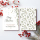 Elegant julkort utan foto med akvarellmotiv av vintergrönska. Det kan anpassas med din personliga hälsning och familjenamn, samt årtal. Baksidan av kortet har ett matchande mönster.