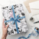 Elegant vintersvartvitt och vit blommigt jul presentpapper