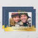 Fira årstidens magi med detta anpassningsbara familjefotokort "God Jul" med en vintersaga-bakgrund och glittrande snöflingor. Kortet är prytt med eleganta blå och gyllene accenter för att ge dina högtidliga hälsningar en sofistikerad touch. Ersätt det platshållande fotot med ditt eget foto och lägg till ditt familjenamn för att skapa ett unikt julkort. Baksidan av kortet visar fallande snö, en enkel "God Jul"-hälsning och ytterligare anpassningsbar text.