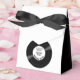 En retro vinyl-posta stil-affär med elegans. Din vinylpost för personlig visas på framsidan och baksidan. Postetiketten innehåller ditt monogram, bröllop-datum och namn tillsammans med ett Tack till dina gäster. Framsidan och baksidan är vita. Sidopanelerna är svarta. Den här eleganten ser vi svart och vitt ut med en svart båge. Ett vackert drag för din musik eller retro vinyltema bröllop. De kommer att tillföra bord en trevlig beröring. Alla färg kan anpassas i Design Verktyg. Postetiketten färg är svart. Delar av den Hej Rosan Feathers Vinyl for Music Älskare samling.