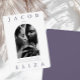 Elegant violett fotobröllopsinbjudan har en modern layout med fet typografi och en skymf tillbaka inbjudan som är redigerbar för din anpassningsbar färg!
