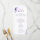 Utformningen har bilderna av delikata violetter i övre, lämnat och nedre högernas hörn. Monogram av Bride och Groom visas överst följt av menyalternativ och menyalternativ. All text är anpassade. Omvänd har en kor och en större bild av en violett bouquet. Designad att samordna med "Elegant Violets Catholique Bröllop Suite".