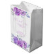 Elegant och enkel presentpåse för bröllopsfest med lila rosblomma och livlig kalligrafi text.