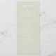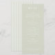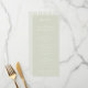 Denna eleganta meny för bröllop har en minimalistisk layout med en mjuk, saffiansgrön bakgrund som skapar en förfinad och sofistikerad atmosfär. Designen använder rena serif-typsnitt för rubriker och menyalternativ, ordnade i snyggt åtskilda sektioner åtskilda av prickade linjer, vilket förbättrar läsbarheten och det visuella intrycket. Varje rätt är genomtänkt listad, från färska förrätter till dekadenta desserter, vilket gör den perfekt för ett exklusivt evenemang. De anpassningsbara platshållarna längst ned möjliggör personalisering, vilket säkerställer att denna meny kan anpassas till alla speciella tillfällen.