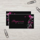 Elegant visitkort med rosa och svart blom- design. Detta kort är klart för customisation med din information om affären. All text kan ändras - ändra stilen, färgar, storleksanpassar, tillfogar eller tar bort textfält för att passa dina behov. Om du behöver någon hjälp, behaga e-posten Kirsty på kirsty_pargeter@yahoo.co.uk